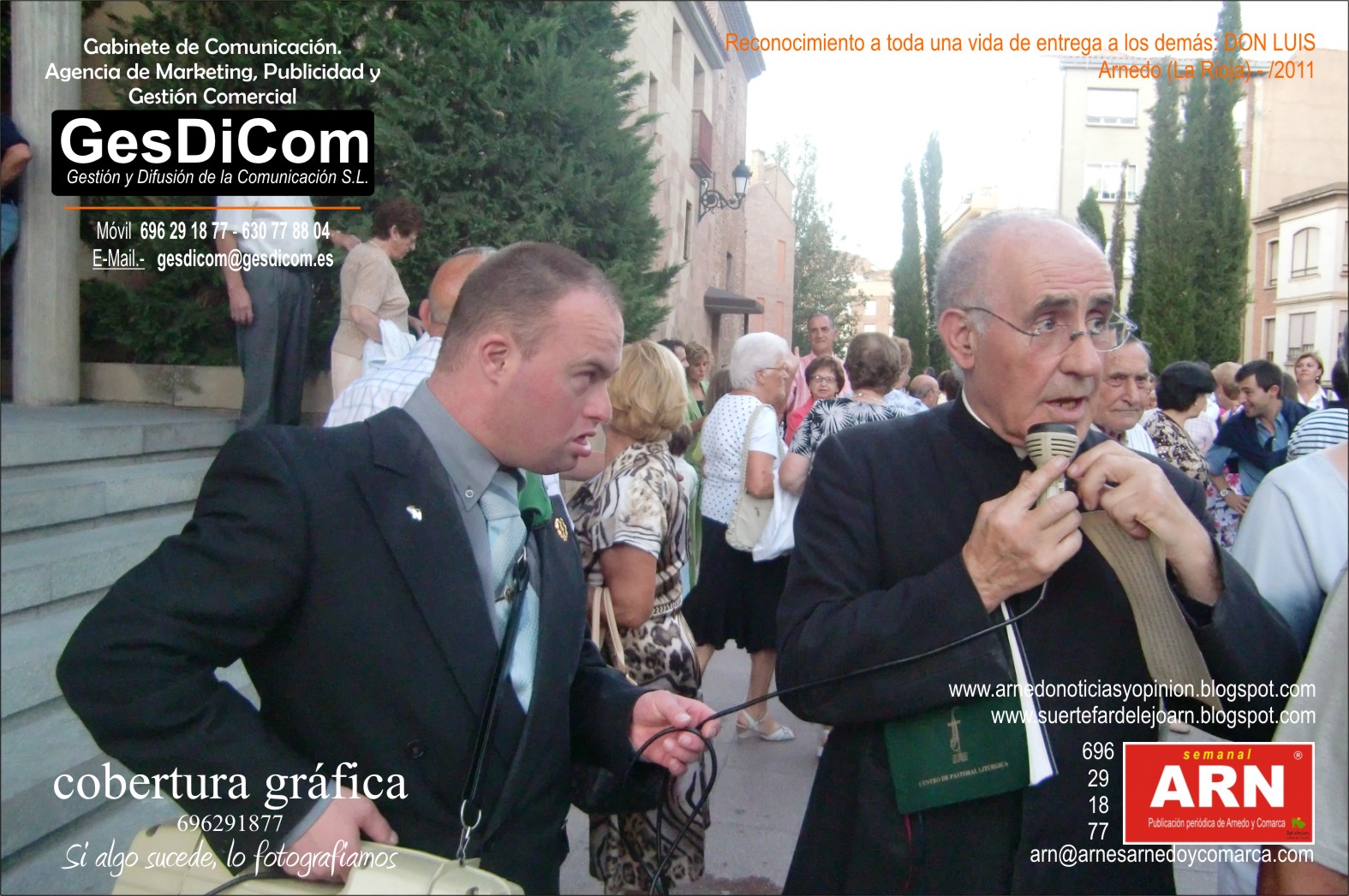 Don Luís, ese sacerdote, de los pocos que todavía visten sotana, y que forma parte de la vida cotidiana de esta ciudad. Ese Don Luís que ha sido el alma mater del Club Isasa, del Orfeón arnedano, de la adoración nocturna, continuador del cine infantil, miembro del grupo de auroros, figura indispensable en el Rosario de la Aurora, miembro activo de Cáritas... Lleva con nosotros tantos años y ha trabajado tanto por este pueblo que, aunque nació en la cercana localidad de Autol, es tan arnedano como el que más.